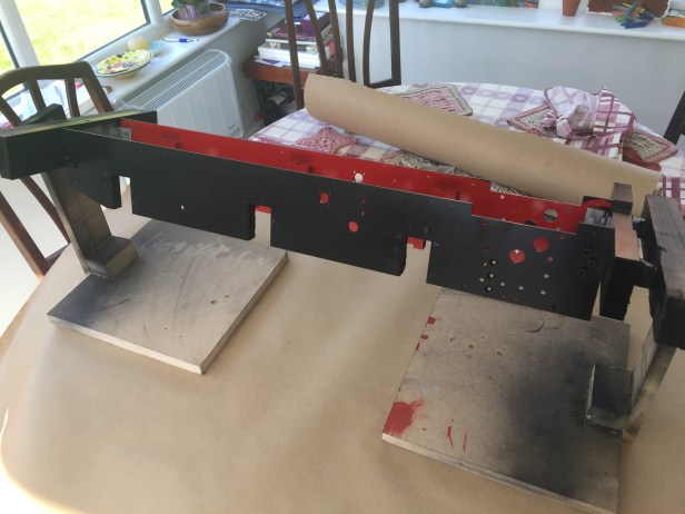 I have also experimented with my Badger 200 airbrush. I had never used an airbrush before. I was surprised how easy it was and how controllable compared with a spray can. My plan now is to wrap the entire painted elements in masking foil and tape and then to airbrush the Signal Red onto the outside of the buffer beams.