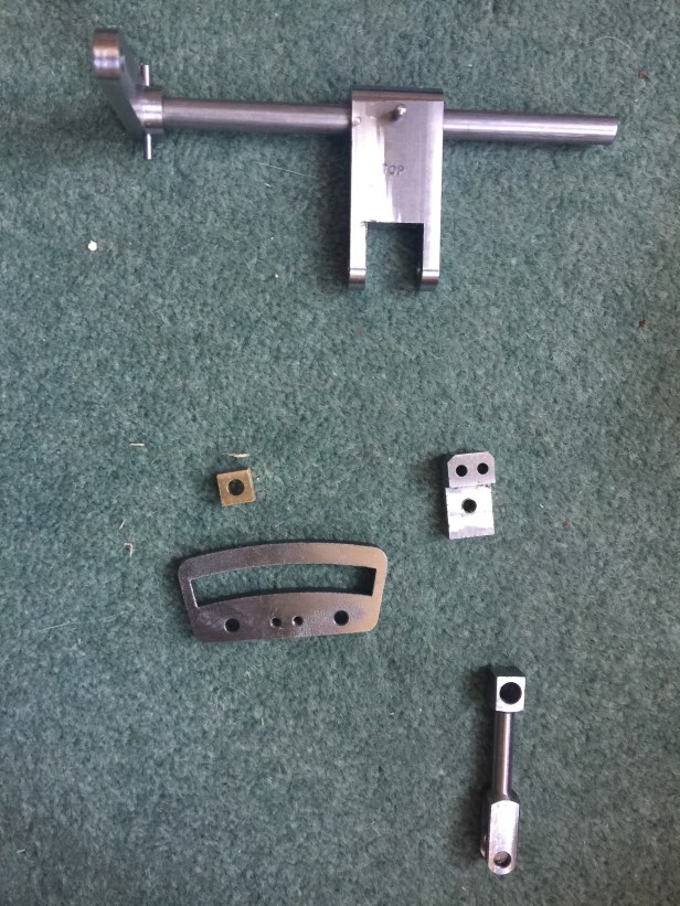 Below is a picture of the key elements of the motion: the weighshaft, the expansion link and die block and the trunion and bracket for connecting the motion to the weighshaft.