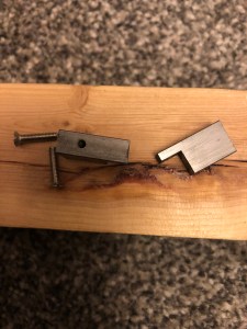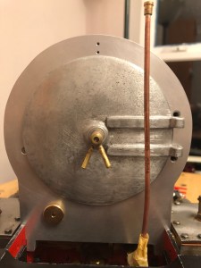 The next bit was one of those trial fit, file, refit, repeat jobs. The first challenge being to file the top and bottom surfaces of the hinge on the door to fit between the hinges on the smokebox.