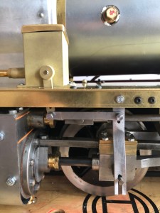 The final element for the lubricator is the activation mechanism that runs off the crosshead. It is a pivot arrangement attached to the valance. Apparently the geometry of this is all specific to the Molly Ann and the lubricator so does not need specific adjustment.